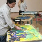 KLANG & MALEREI, Malen zu Live-Musik (Goethe groovt) in Ottensheim, im alten Amtsgebäude, Juni 2012